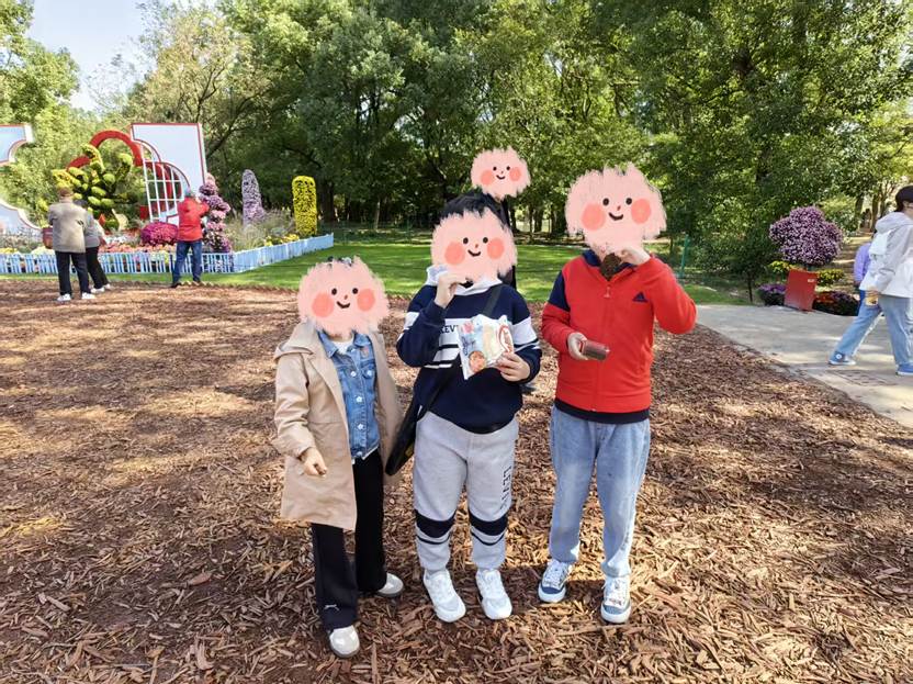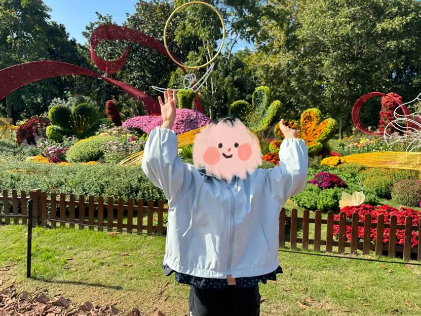 一进公园,五彩斑斓的花卉和大片大片的菊花立刻吸引了大家的注意。孩子们在花丛旁小路漫步,一边走,一边好奇地打量每一朵花。在老师和公园工作人员的提醒下,他们都记住了要爱护花草,只用眼睛欣赏,不去伸手触摸。家长们则在一旁举起手机,记录孩子们的一张张笑脸。