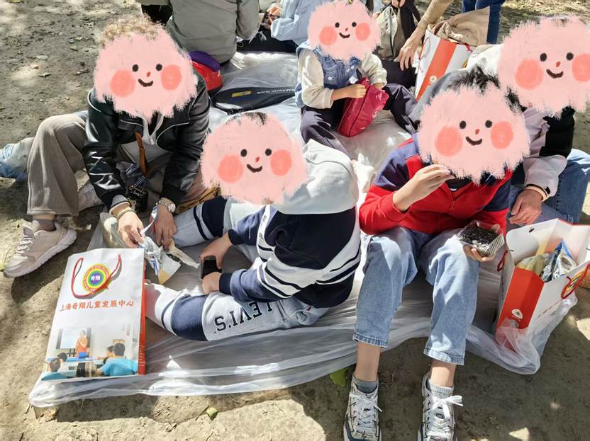 午餐时间,大家铺开野餐垫,在草地上围成好几圈,分享着各自带来的食物。你递给我一块饼干,我送你一颗奶片,欢声笑语和食物的香气飘满了整块草地。