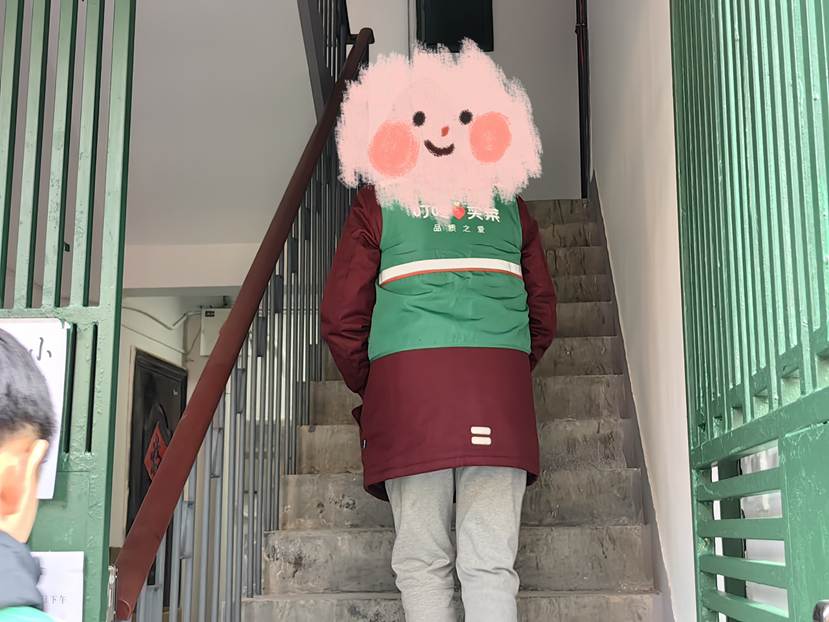 准备工作就绪,真正的挑战才刚刚开始。在配送员和特教老师一对一的陪伴下,孩子们手提商品,走出仓库,步行前往附近的小区。这段从前置仓到住户家门的路,成了下午体验中最关键的一段。他们需要将商品安全送达,并完成一次真正的交接。